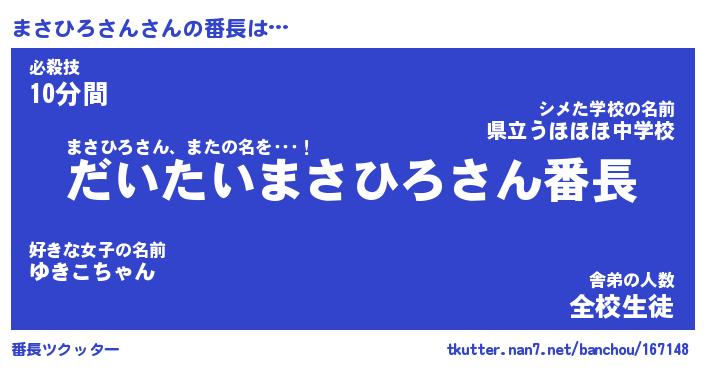 | ヒーロー風カッコイイあだ名 | 『スーパーマサヒロサン』『暗黒騎士マサ』 |