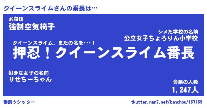 | ツイッター | クイーンスライムさんのツイッターID『fukuyoka_nyan』 |