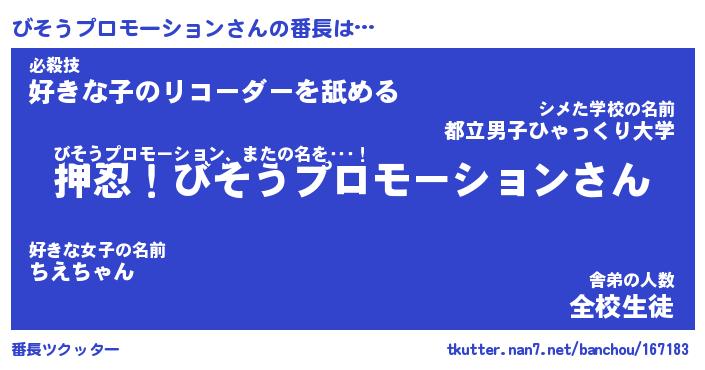 | 肩書あだ名 | 『びそうプロモーションCEO』 |