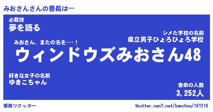 | 意味不明あだ名 | 『ペロリンみおさん』『永久保存みおさん』 |