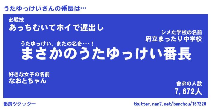 | 肩書あだ名 | 『うたゆっけい店長』『うたゆっけい塾長』 |