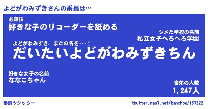 | 欧米人風あだ名 | 『マイケルよどがわみずき』 |