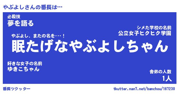 | 意味不明あだ名 | 『ペロリンやぶよし』『永久保存やぶよし』 |