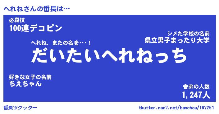 | ヘコむあだ名 | 『へれにゅー』『つくし』 |