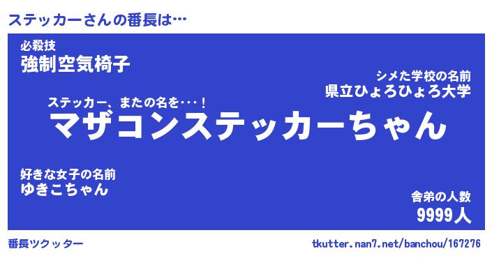 | ヘコむあだ名 | 『ステもー』『つくし』『ステを』 |