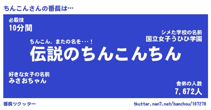 | ファンタジー風あだ名 | 『チンフェル』『エターナルチンコンー』 |