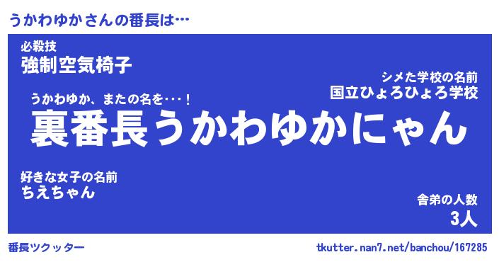 | 伝説のあだ名 | 『不死鳥のスナイパーうかわゆか』 |