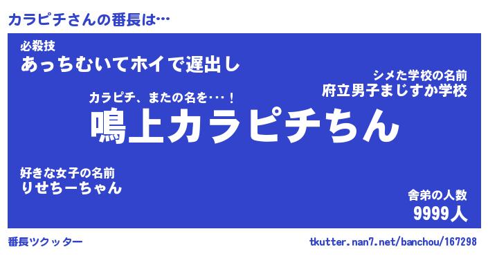 | 意味不明あだ名 | 『ペロリンカラピチ』『永久保存カラピチ』 |