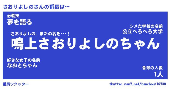| 意味不明あだ名 | 『ペロリンさおりよしの』 |