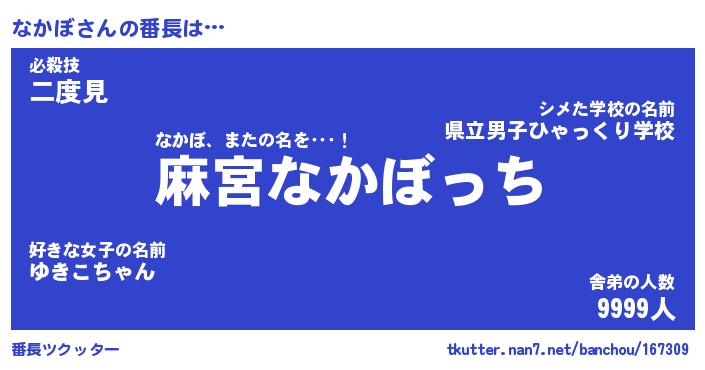 | ヒーロー風カッコイイあだ名 | 『スーパーナカボ』『ウルトラなかぼマン』 |
