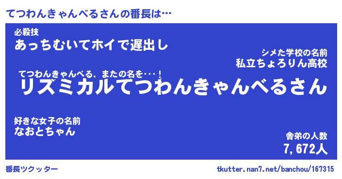 | 伝説のあだ名 | 『伝説のスナイパーてつわんきゃんべる』 |