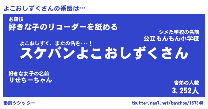 | 伝説のあだ名 | 『不死鳥のスナイパーよこおしずく』 |