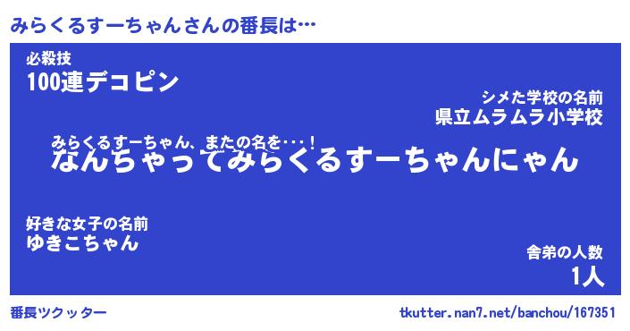 | ヘコむあだ名 | 『みらもー』『つくし』『みらっぺ』 |