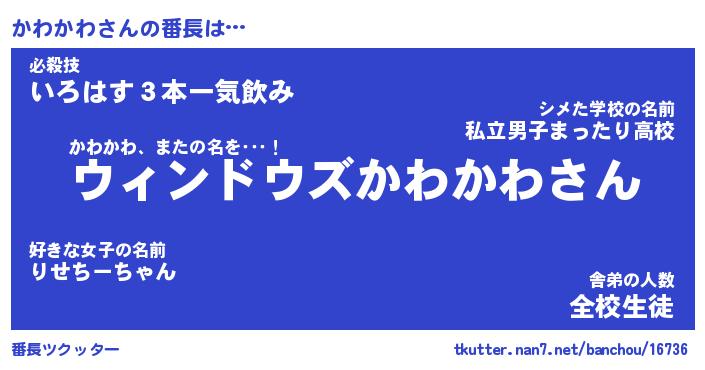 | ヒーロー風カッコイイあだ名 | 『スーパーカワカワ』『暗黒騎士カワ』 |