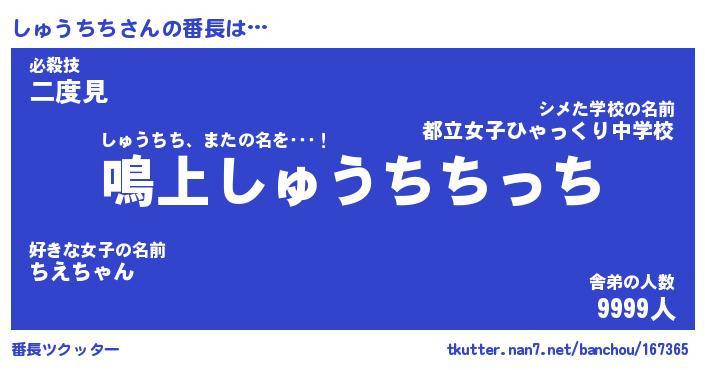 | ヒーロー風カッコイイあだ名 | 『スーパーシュウチチ』『天弓騎士シュ』 |