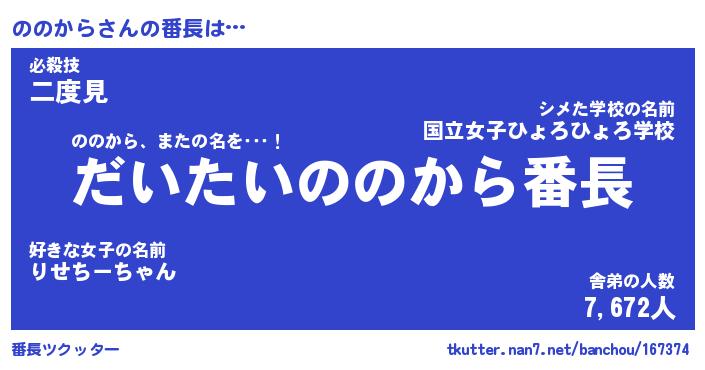 | ポケモン風あだ名 | 『ノノチュウ』『ノノカダネ』 |