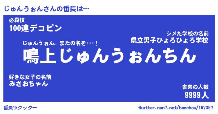 | ピコ太郎風あだ名 | 『ジコ四郎』『ピジ八郎』『ジュ三郎』 |