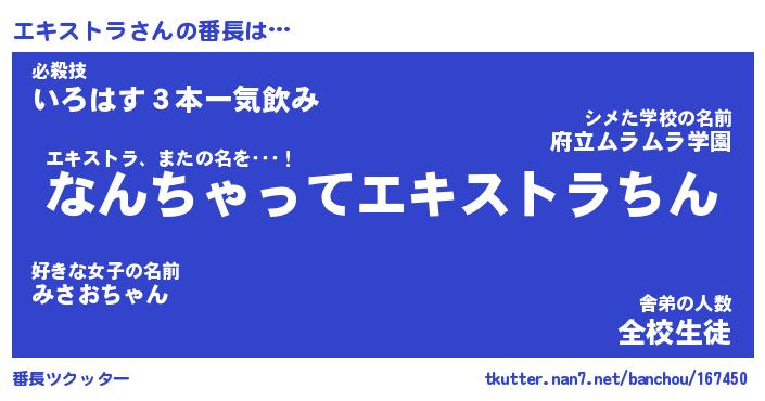 | 肩書あだ名 | 『エキストラ店長』『エキストラ大統領』 |