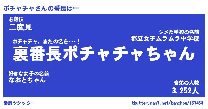 | ポケモン風あだ名 | 『ポチチュウ』『ポチャダネ』 |