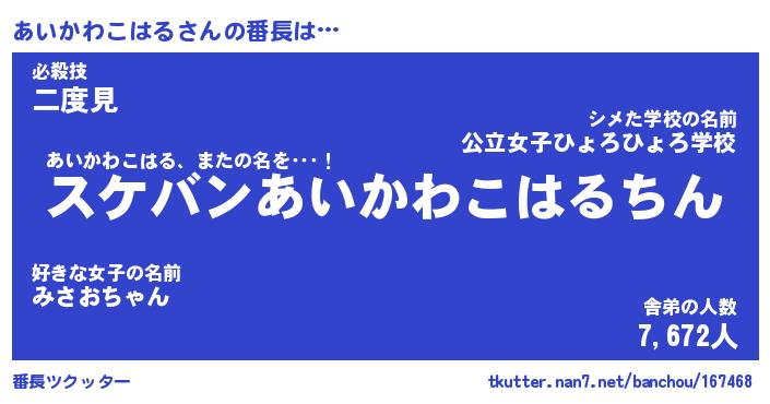 | 肩書あだ名 | 『あいかわこはる御曹司』 |