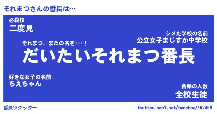 | 意味不明あだ名 | 『ペロリンそれまつ』『永久保存それまつ』 |