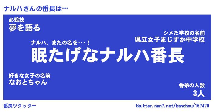 | 意味不明あだ名 | 『ペロリンナルハ』『ナルハフォーエバー』 |