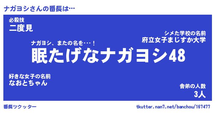 | ファンタジー風あだ名 | 『ナガフェル』『エターナルナガヨシー』 |