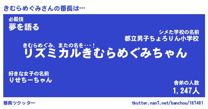 | 伝説のあだ名 | 『伝説のスナイパーきむらめぐみ』 |