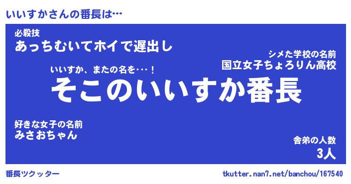 | 意味不明あだ名 | 『ペロリンいいすか』『永久保存いいすか』 |