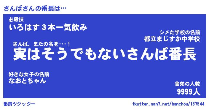 | ヒーロー風カッコイイあだ名 | 『スーパーサンバ』『ウルトラさんばマン』 |