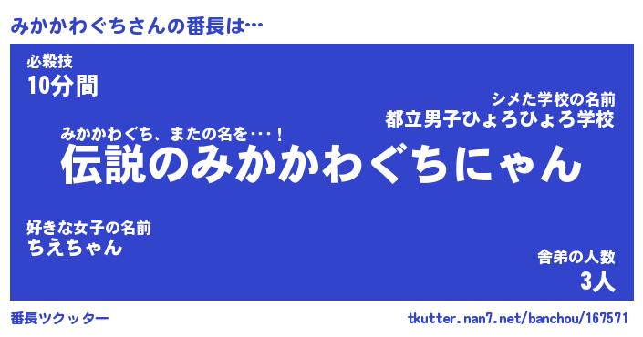 | 伝説のあだ名 | 『伝説のスナイパーみかかわぐち』 |