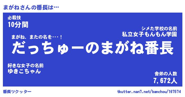| 2回繰り返すあだ名 | 『まがまが』『ままがが』『ぬるぬる』 |