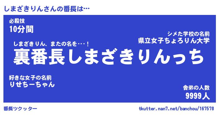 | ヒーロー風カッコイイあだ名 | 『スーパーシマザキリン』『天弓騎士シマ』 |