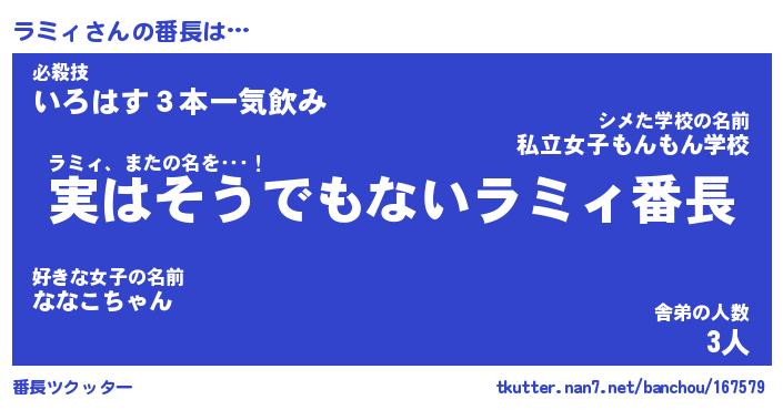 | ヘコむあだ名 | 『ラミもー』『なまこ酢』 |