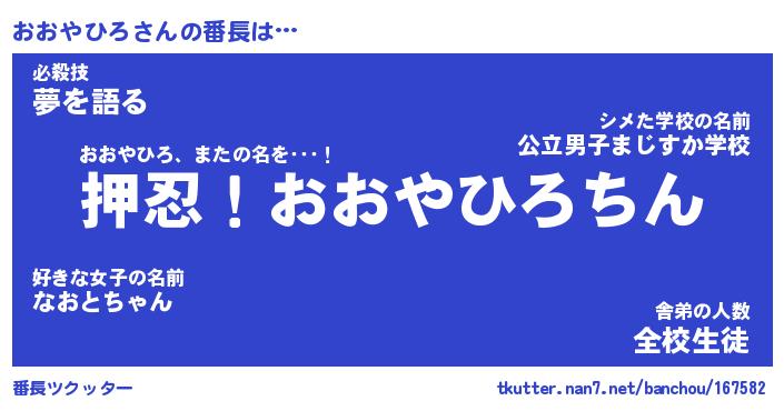 | ファンタジー風あだ名 | 『オオフェル』『エターナルオオヤヒロー』 |