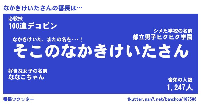 | 肩書あだ名 | 『なかきけいた社長』『なかきけいた担任』 |