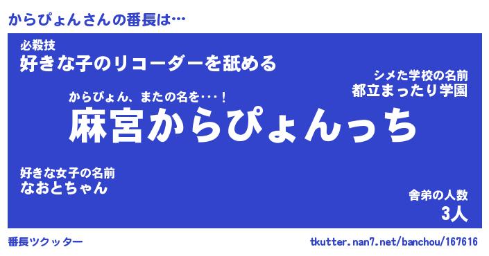 | 胡散臭い通販商品みたいなあだ名 | 『モテモテ間違いなし水晶球…その名も「からぴょん」』 |