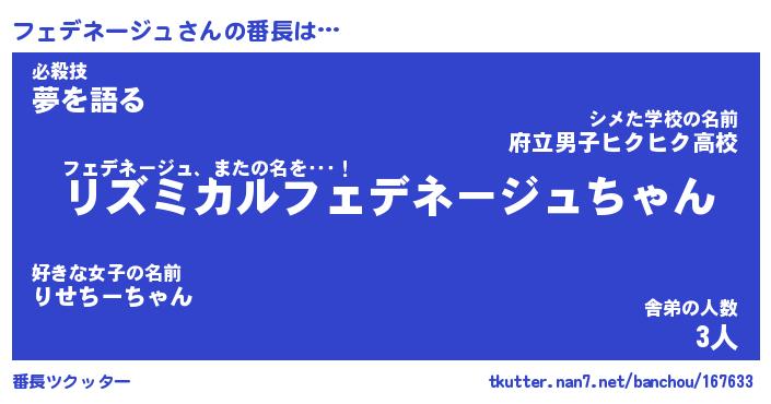 | ファンタジー風あだ名 | 『フェフェル』『ファントムフェス』 |