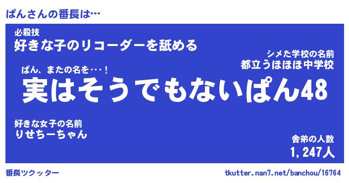 | ヘコむあだ名 | 『ぱんふぇ~』『牛乳』『ぱんを』 |