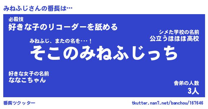 | 肩書あだ名 | 『みねふじ店長』『みねふじ総理大臣』 |