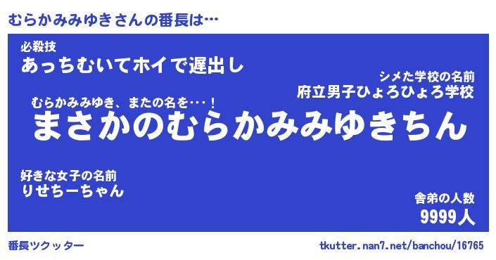 | 伝説のあだ名 | 『伝説のスナイパーむらかみみゆき』 |
