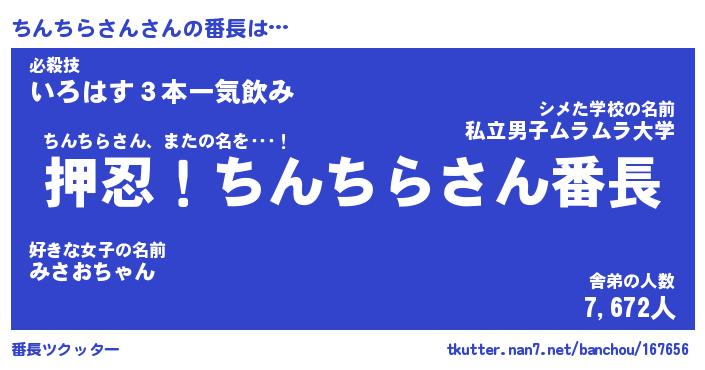 | 2回繰り返すあだ名 | 『ちんちん』『ちちんん』『ぬるぬる』 |