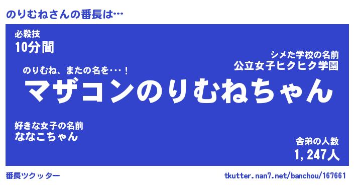 | ヘコむあだ名 | 『のりにー』『なまこ酢』『のりっ子』 |