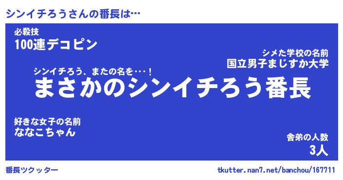 | 胡散臭い通販商品みたいなあだ名 | 『必ず成功するブレスレット…その名も「シンイチろう」』 |