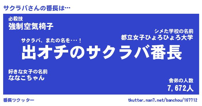 | 意味不明あだ名 | 『ペロリンサクラバ』『永久保存サクラバ』 |