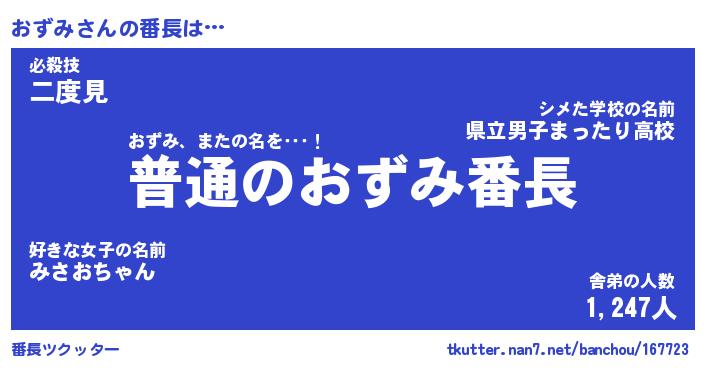 | ヒーロー風カッコイイあだ名 | 『スーパーオズミ』『ウルトラおずみマン』 |