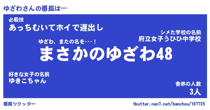 | ヘコむあだ名 | 『ゆざにー』『つくし』『ゆざ太郎』 |