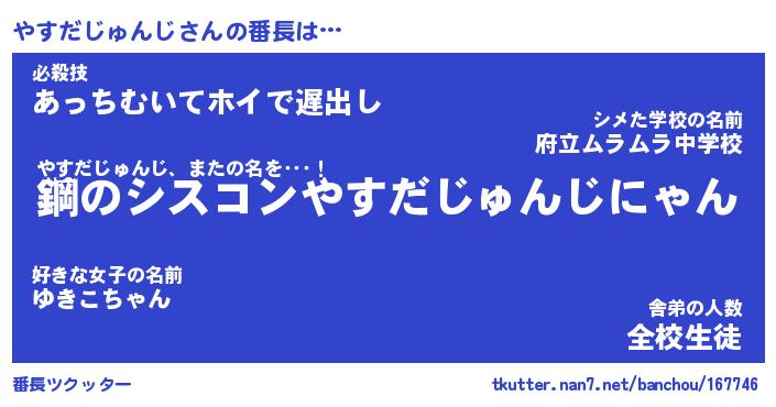 | 恥ずかしいあだ名 | 『プリティーやすだじゅんじ』『やすちん』 |