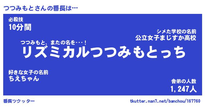 | ポケモン風あだ名 | 『ツツチュウ』『ツツミダネ』 |