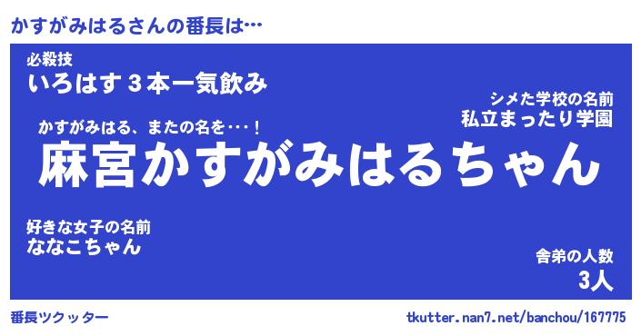 | 肩書あだ名 | 『かすがみはるCEO』『かすがみはる団長』 |